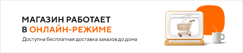 Дорогие покупатели, с 1 по 7 ноября магазин работает в режиме онлайн-торговли. Все совершенные за это время покупки можно получить с помощью бесплатной доставки до дома или на столе выдачи у входа в магазин. Оплатить заказ вы можете при получении в магазине или курьеру. Для пропуска в ТЦ не забудьте с собой QR-код или справку с анализами. Курьер приезжает в маске и перчатках. Время доставки — с понедельника по субботу с 10:00 до 22:00. При оформлении заказа до 17:00 — привезем заказ в этот же день.
